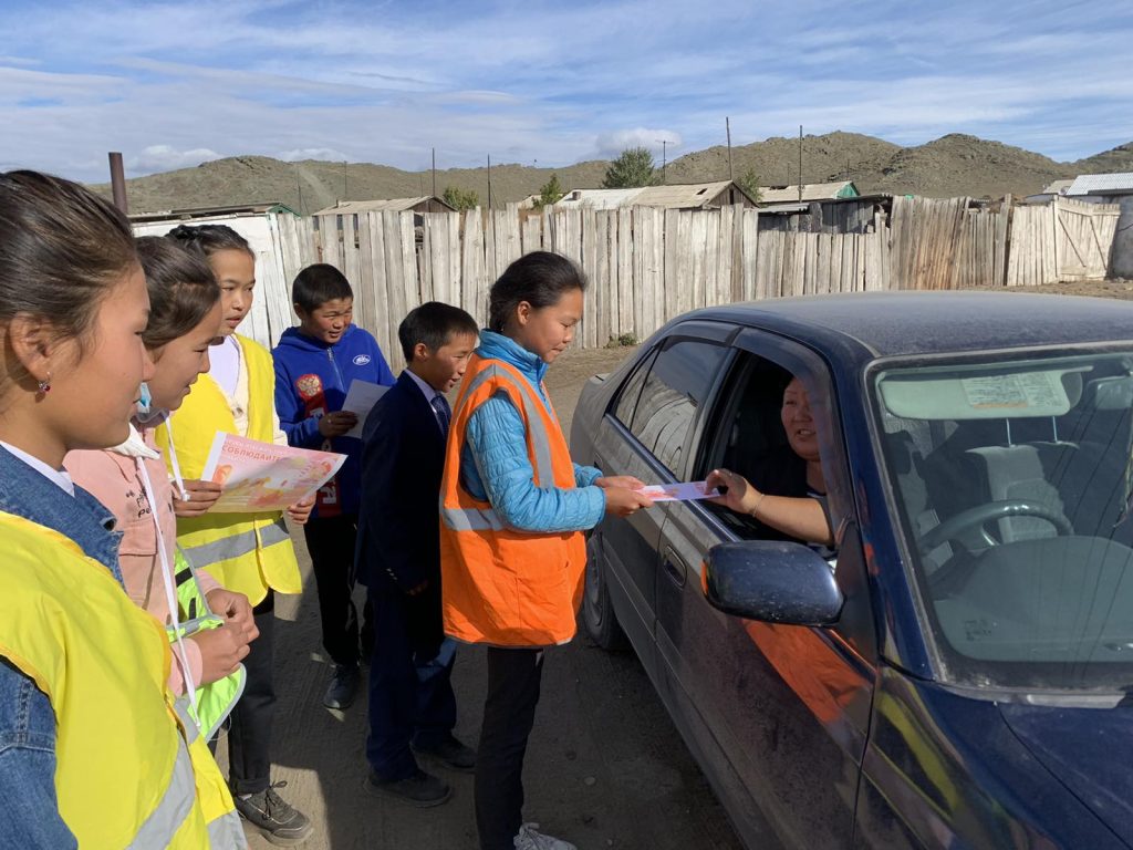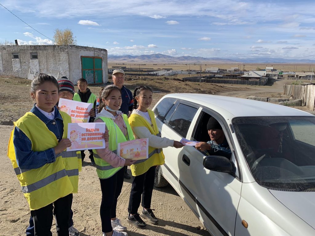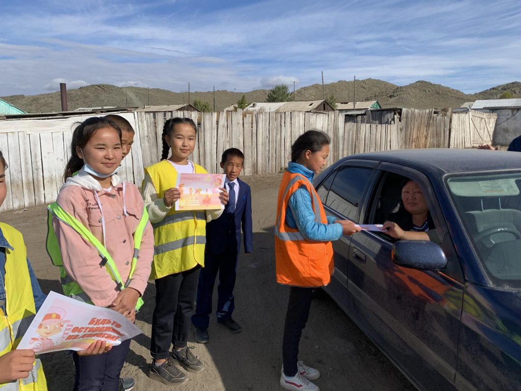 Также учащимися-волонтерами распространены буклеты среди водителей сумона.