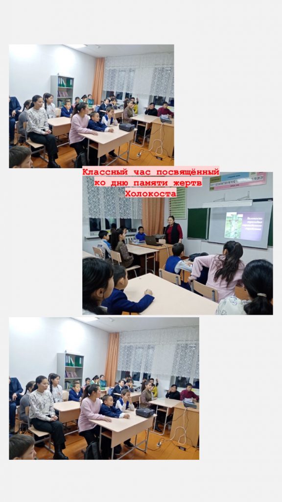 Без рубрики Классный час «Холокост» 17.01.2023 / Сегодня 17.01.2023 года в 1-11 классах был проведён классный час, посвящённый ко дню памяти жертв Холокоста, с целью познакомить учащихся с историей Холокоста и воспитать толерантного отношения к людям разных национальностей.