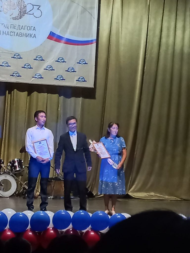 В ходе августовского совещания состоялась торжественная церемония награждения Почетными грамотами МО РТ, Благодарностью ВХ РТ, Почетными грамотами Администрации Барун-Хемчикского кожууна и Управления образования следующие учителя: Саида Сарыг-ооловна — учитель русского языка, Субудай Альбертович — учитель физической культуры, Надежда Максимовна — учитель математики, Байлак Хирлигбеевна — зам.директора по хозяйственной части, Вячеслав Бадай-оолович