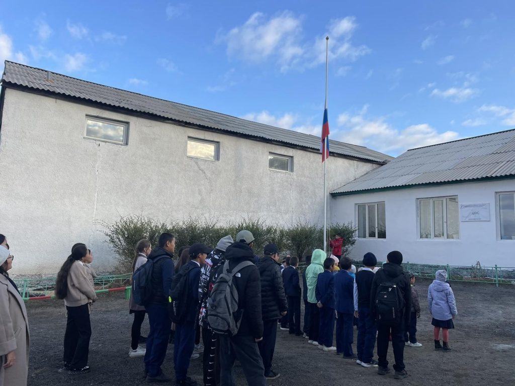 02.10.2023 в МБОУ СОШ с.Бижиктиг-Хая традиционно прошла линейка и церемония прослушивания гимна Российской Федерации и поднятия государственных флагов Российской Федерации и Республики Тыва.