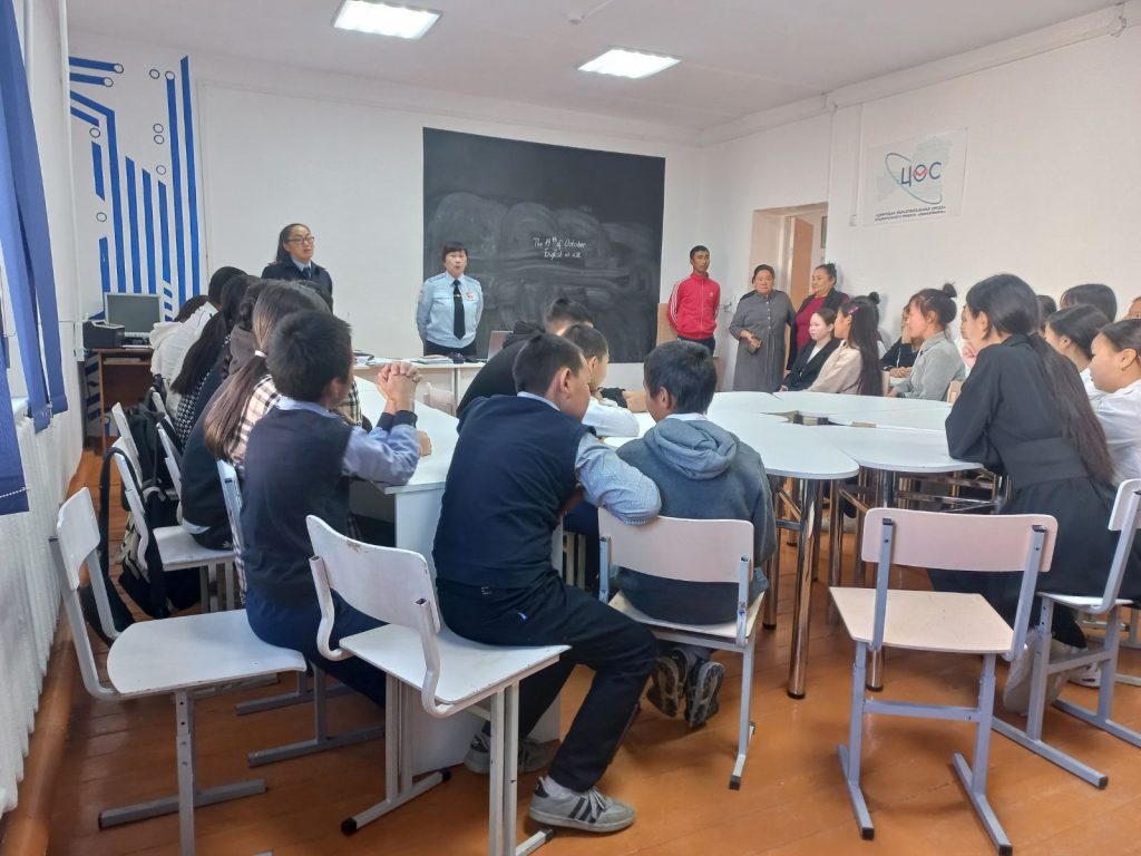 С целью профилактики преступности в молодежной среде, а также других правонарушений и преступлений, совершаемых несовершеннолетними, 19.10.23г в МБОУ СОШ с. Бижиктиг-Хая была организована встреча обучающихся с старшим инспектором ПДН, старшим лейтенантом полиции Чылбак-оол Д-Х. А. и инспектором по ПБДД ОГИБДД МОМВД России «Барун-Хемчикский», капитаном полиции Сарыглар О. К.